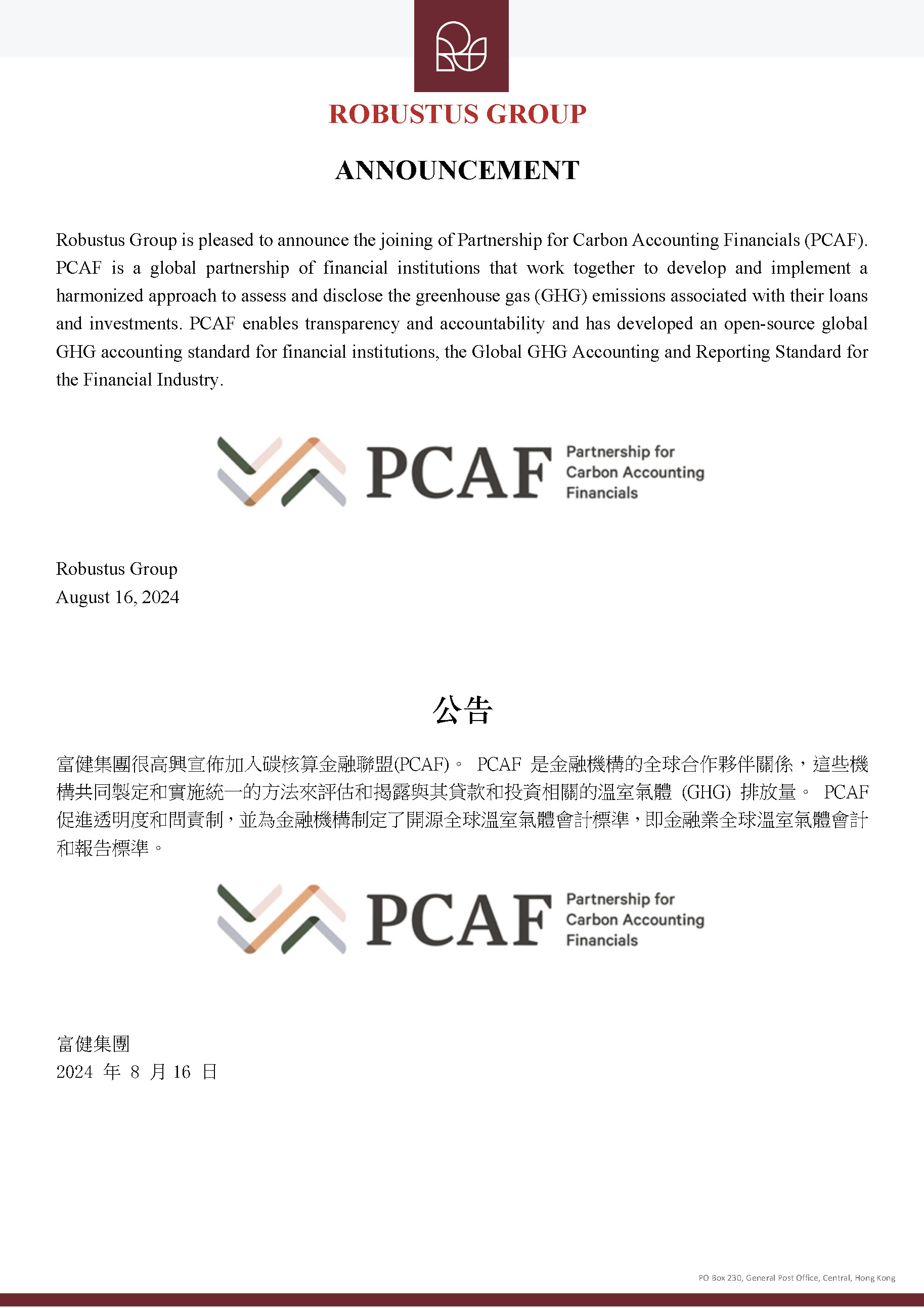 Robustus Group Joining Partnership for Carbon Accounting Financials