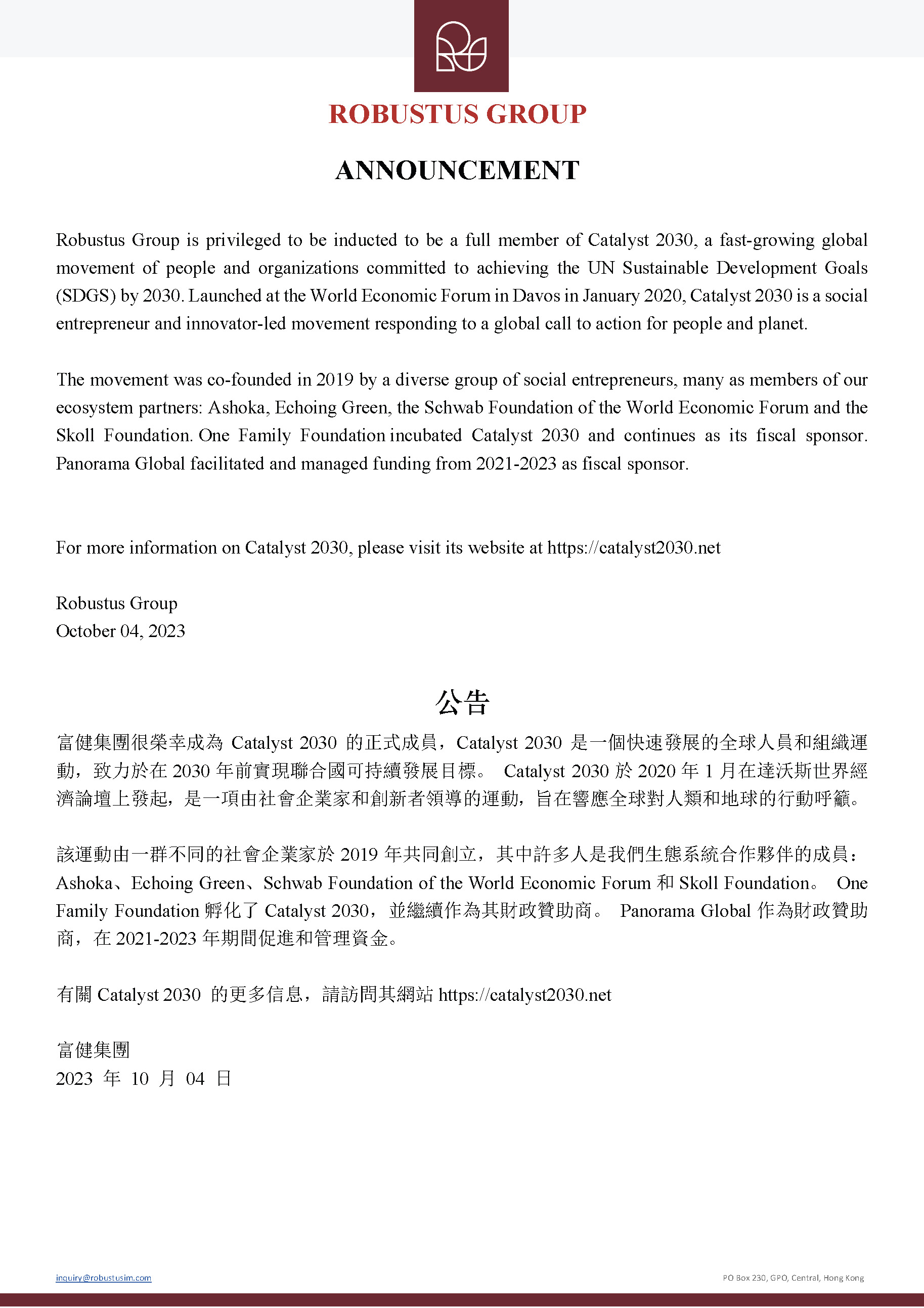 Robustus Group is now a full member of Catalyst 2030