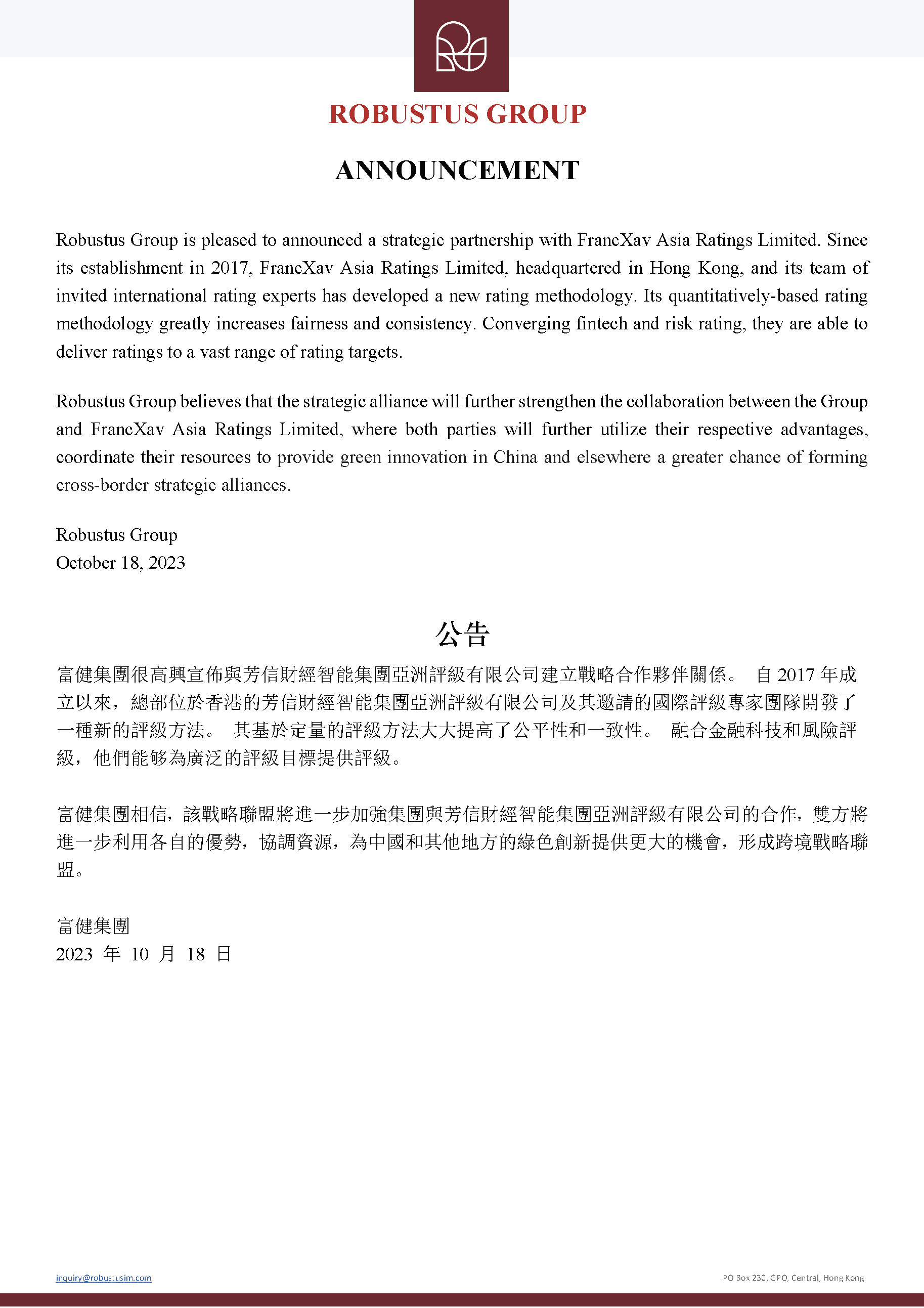 Robustus Group is pleased to announced a strategic partnership with FrancXav Asia Ratings Limited